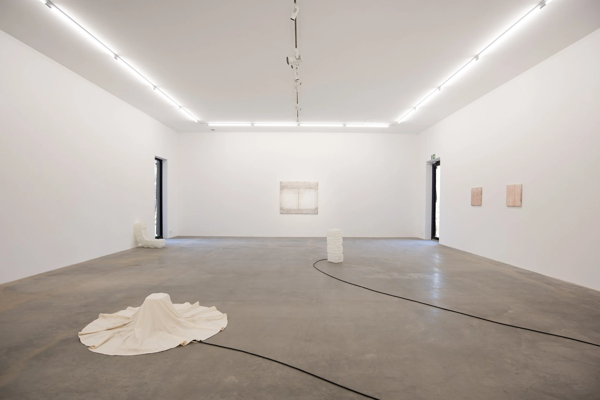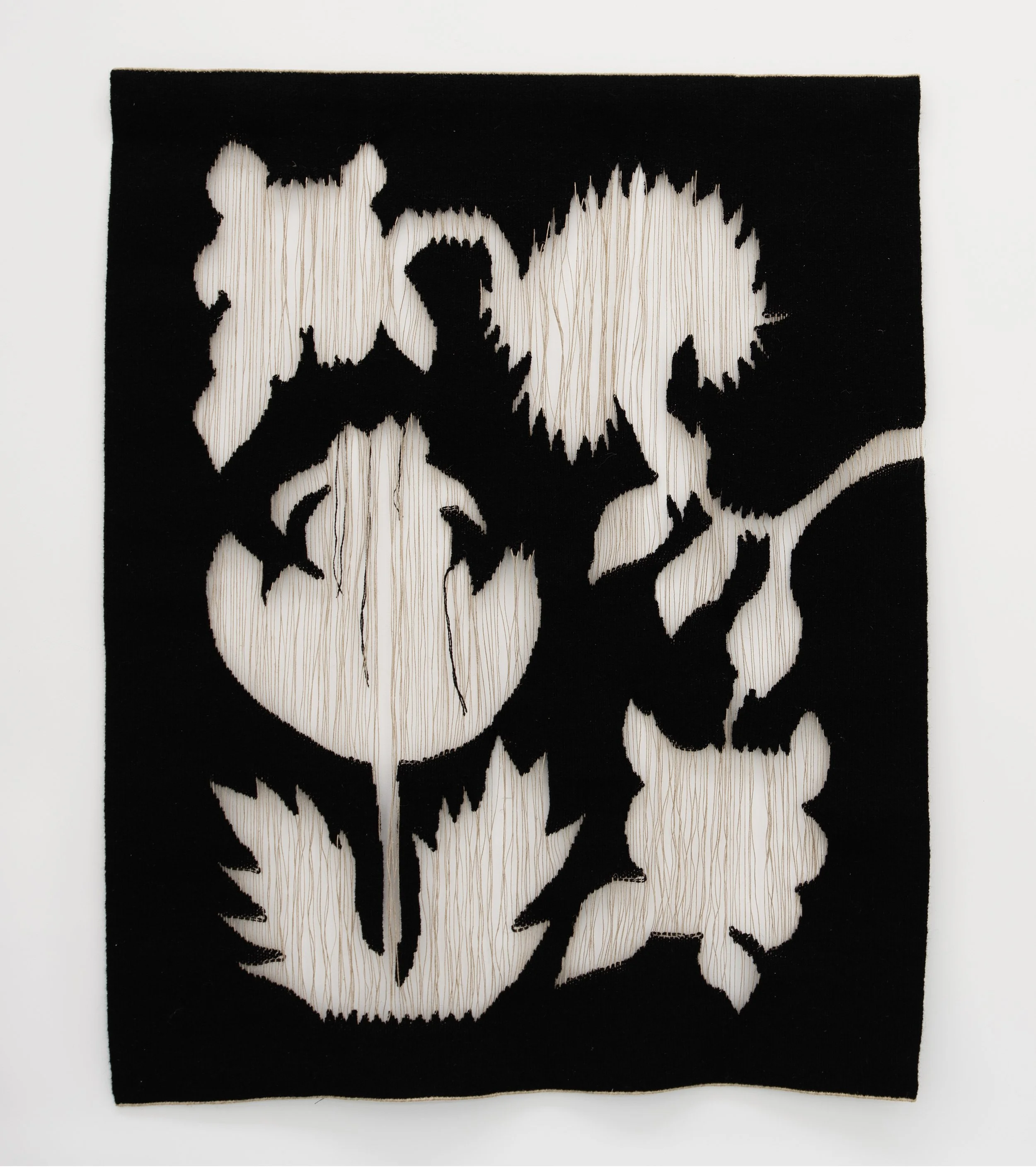Amanda Moberg uses fabric as a medium to explore processes of transformation and destruction. Her works evoke a sense of being in an ongoing, ambiguous state, where surfaces, structures, and orders are in constant flux. The woven texture can be interpreted as an abstraction of nature’s conditions, while simultaneously serving as a fundamental organizing principle of human thought and our perception of the world. Therefore, the fabric should not be viewed solely as an object, but rather as a symbol. Through narrative and gesture, Moberg’s works open up a poetic space of connections, inviting a careful observation that can reveal hidden aspects of our time.