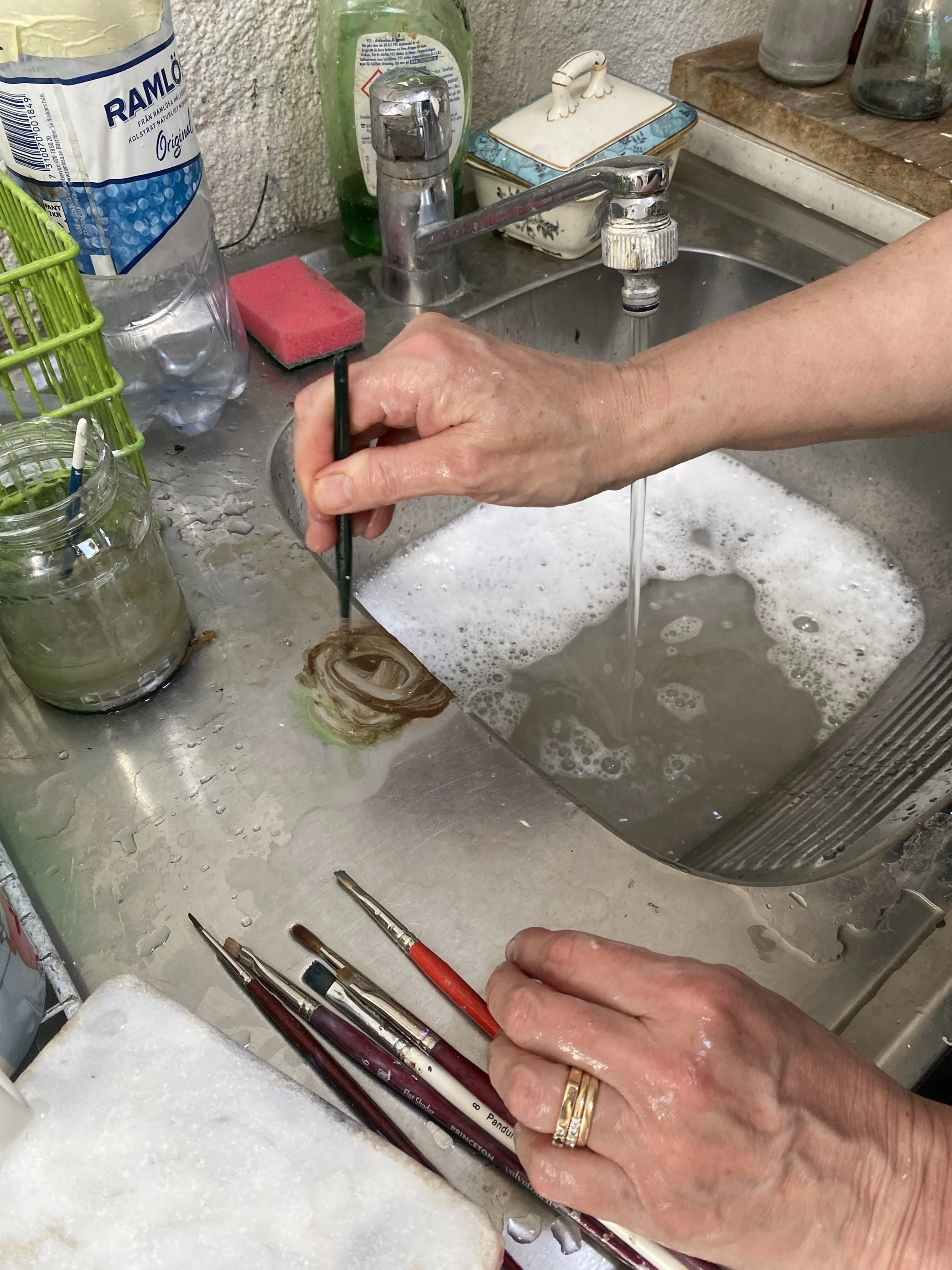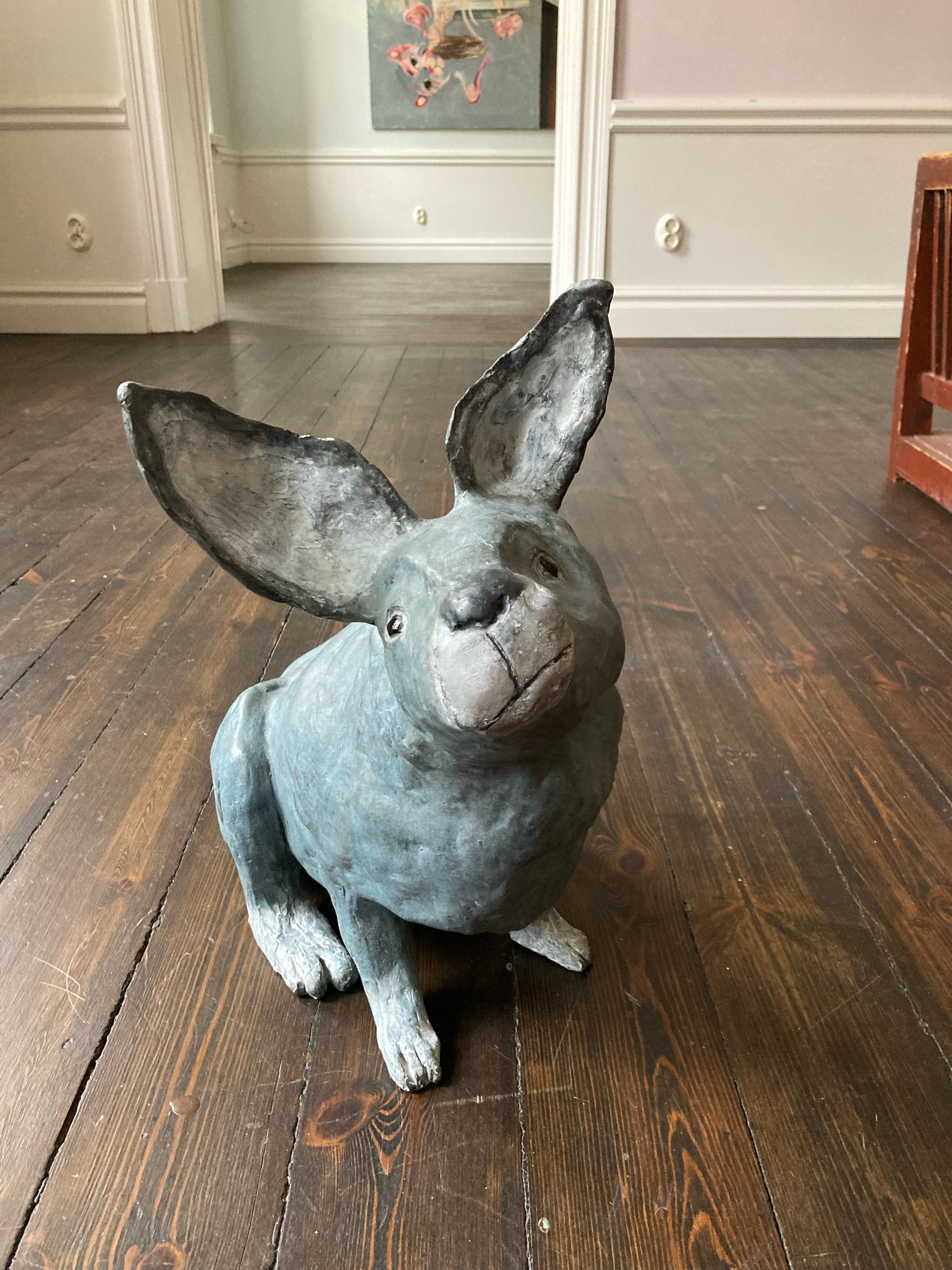 -Det började med att jag gjorde en drömhare, och sen målade jag en verklig hare, så då ville jag fortsätta på det temat som redan finns i utställningen. I Jag förstår vad du menar ville jag fånga det där mänskliga, att man känner att det är en person där bakom. De där öronen, att de lyssnar, att de är stora och är med. Att det är den som förstår. Den är inte gracil, lite baktung till och med. Jag tycker att den där perfektionen är så tråkigt jag vill ha det där mänskliga i skörheten.